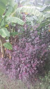 A mix of ground covers such as sweet potato vine, lazy sue, peppermint. Then some 4’oclocks (yellow and pink), begonias, bromeliad, skullcaps, Phillopine violet, travelling Iris, Gladiolus, and some succulents and well other pretties that I don’t know names of.